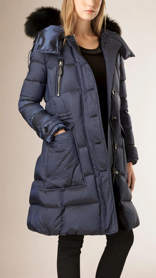 Burberry navy puffer coat clearance, NWT Burberry Ribbmoore Fur-Trimmed Puffer Coat Jacket Navy M $1,695 | eBay clearance