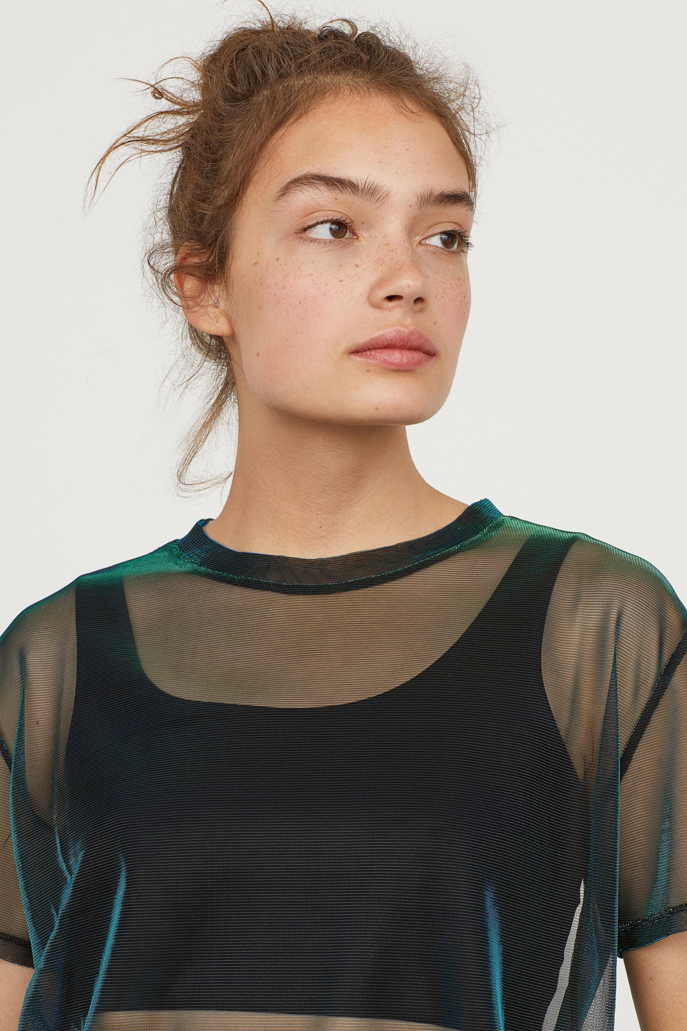H&m mesh top clearance, H\u0026M Synthetic Shimmering Mesh Top | Lyst clearance