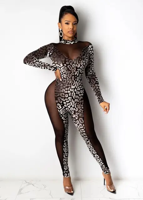 - Cheap Sheer mesh velvet jumpsuit