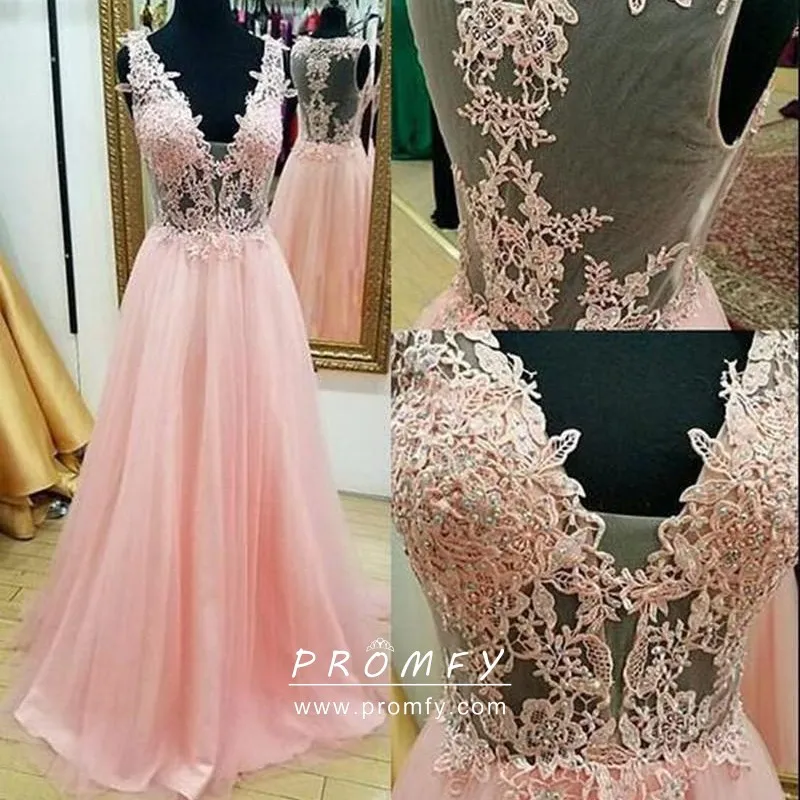 Pink lace prom dress clearance