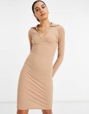 - Cheap Ribbed dress with collar