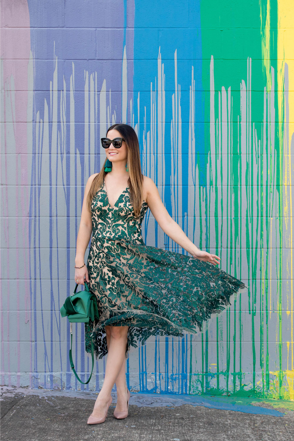 - Emerald green flare dress