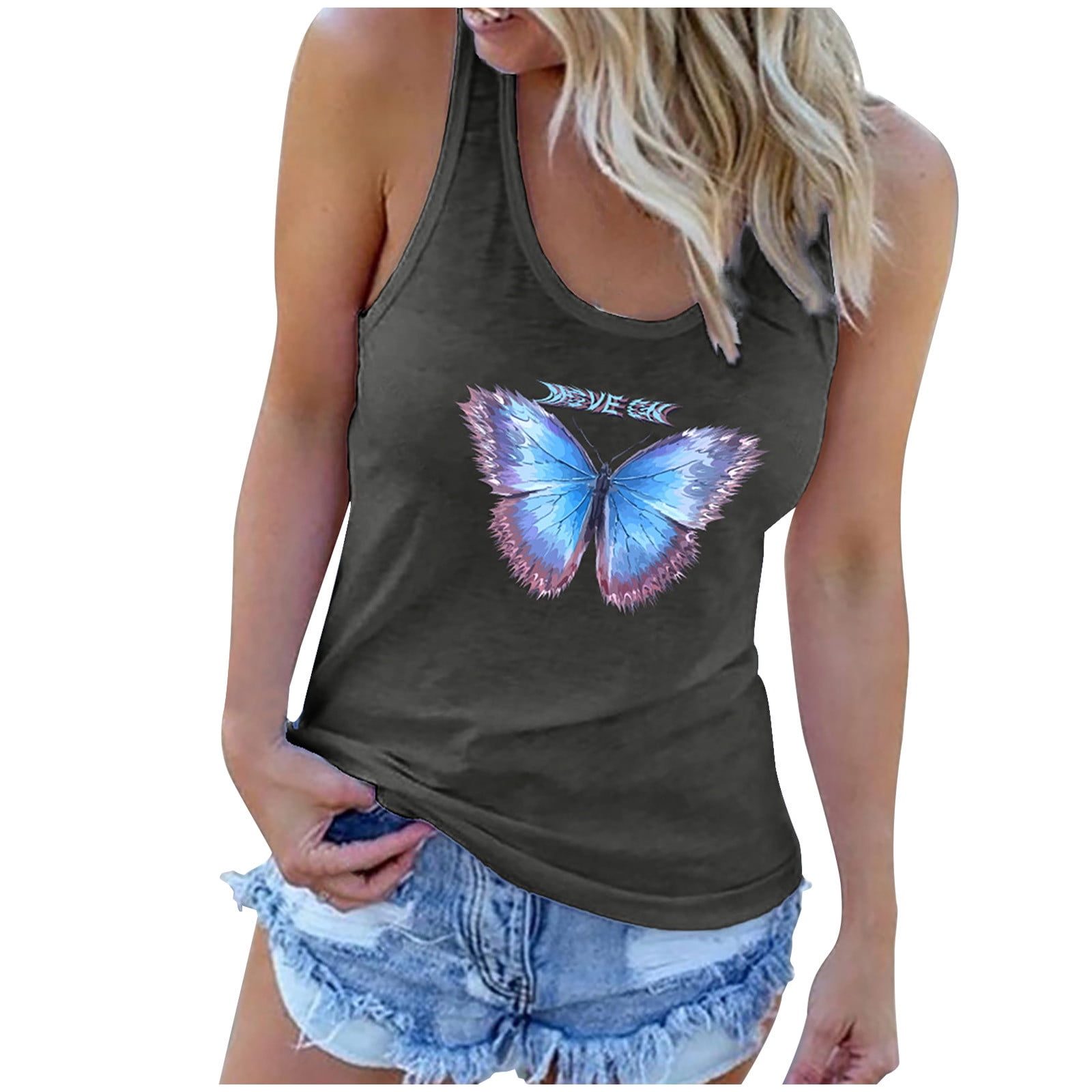 Butterfly sleeveless top clearance, Women Butterfly Print Tank Top clearance