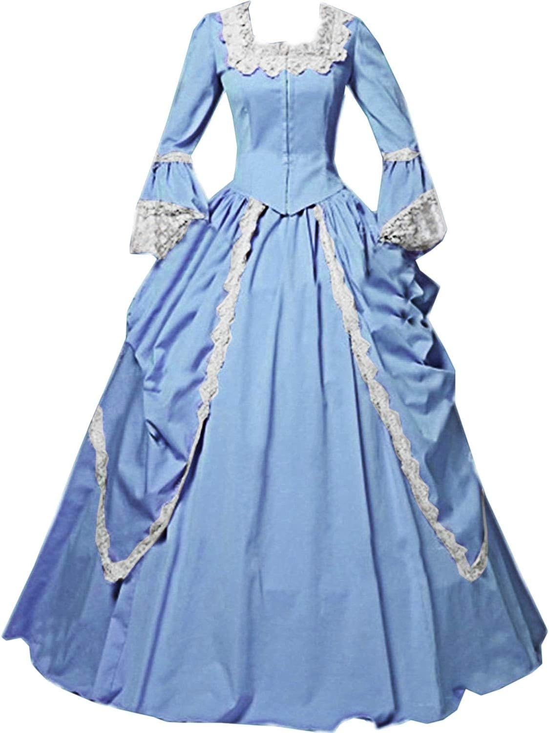 1700s womens fashion clearance, I-Youth Womens Lace Marie Antoinette Masked Ball Victorian Costume Dress (S, Sky Blue) clearance