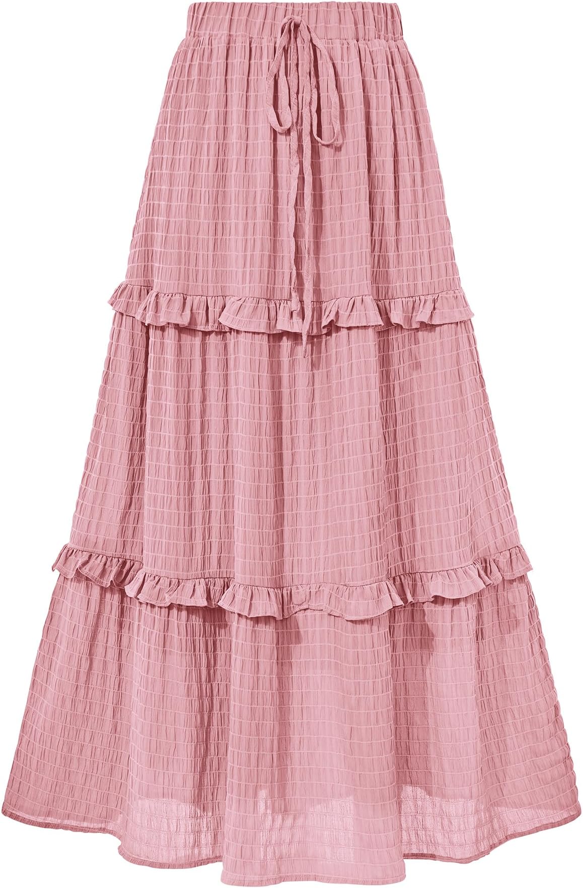 Spring maxi skirts clearance, Berydress Long Skirts for Women Trendy Elastic Waist Flowy Summer Ankle Length Boho Flared A Line Tiered Maxi Skirt clearance