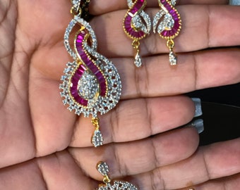 Light weight diamond pendant sets clearance, Ruby Diamond Pendant Set/studs/gold Plated/cz and AD Diamond Pendant/statement Jewelry/indian Jewelry/pakistani Jewelry/lightweight - Etsy clearance
