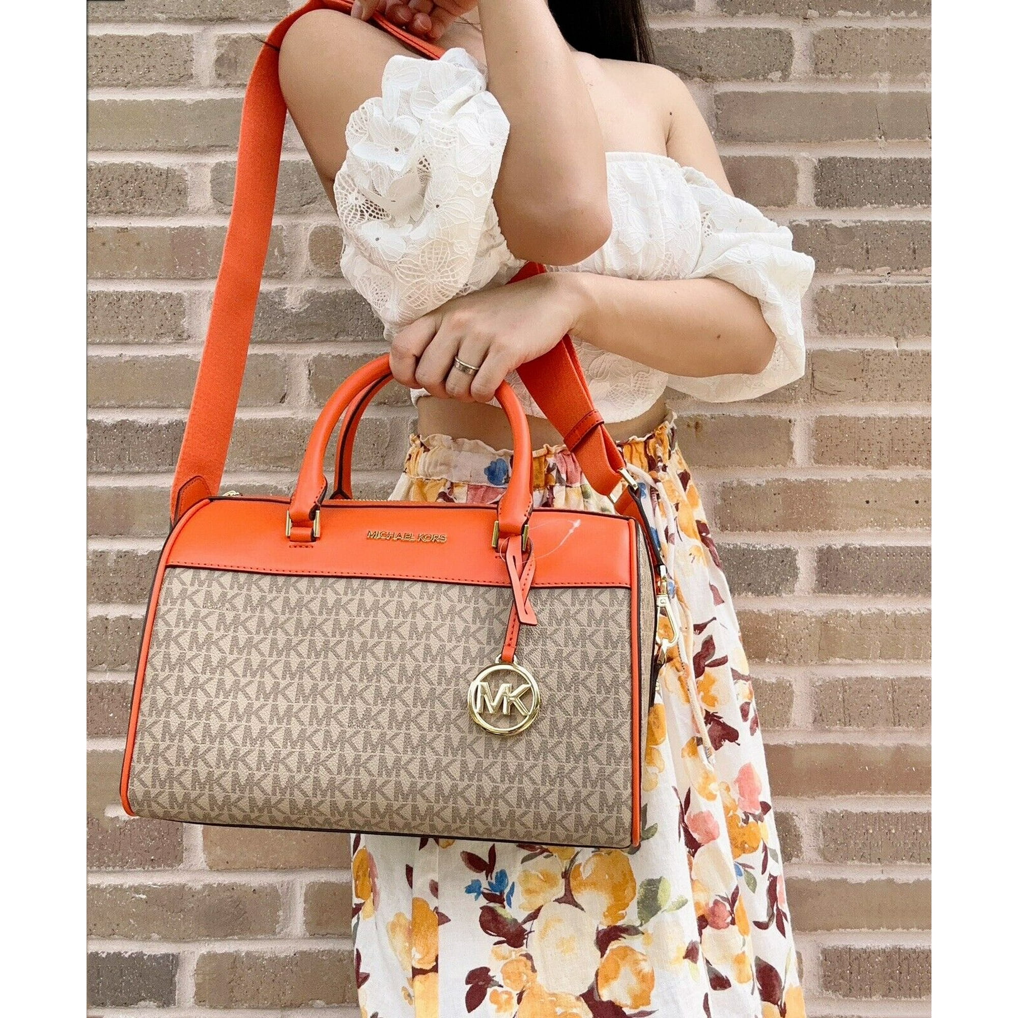 Mk duffle bag medium clearance, Michael Kors MK Jet Set Travel Medium Duffle Bag Satchel Poppy Orange Sand MK - Walmart.com clearance