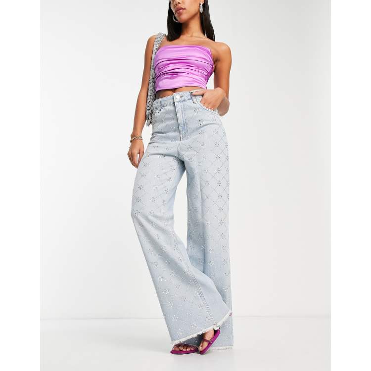 Jeans levis asos clearance, ASOS LUXE denim jeans with all over diamante grid in blue | ASOS clearance