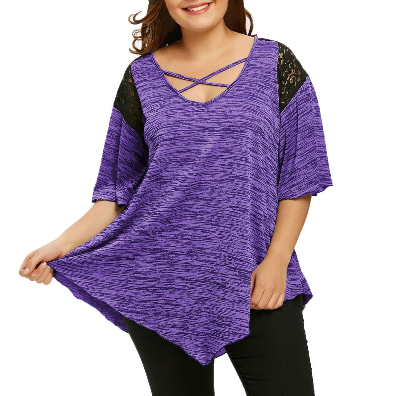 Walmart plus size tees clearance, Women's Plus Size Tops Crewneck Lace clearance