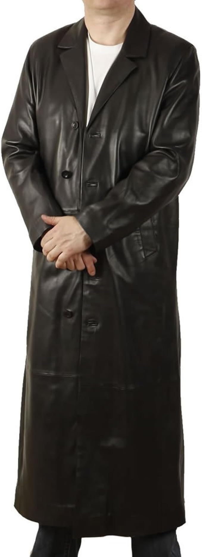 Leather overcoats clearance, Mens Leather Coat Full Length Black clearance