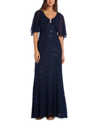 - Shopping R & m richards sequined lace cape gown