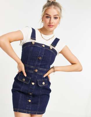 Dungaree short dress clearance, River Island Petite fitted denim clearance