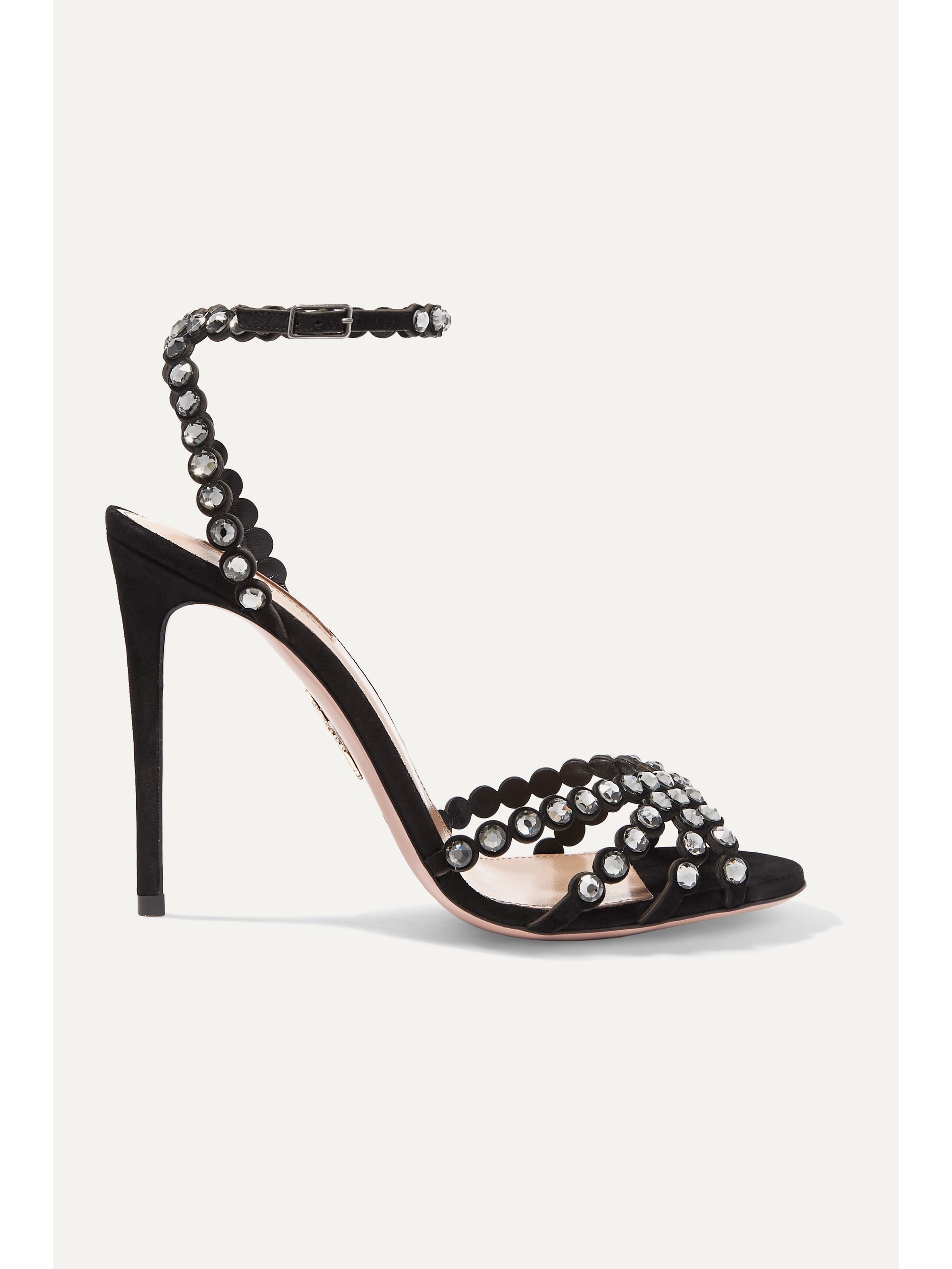 Aquazzura black sandals clearance, Shop Aquazzura Celeste 105mm crystal clearance