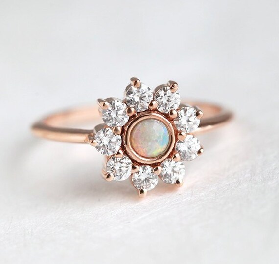 - Opal and diamond flower ring shop