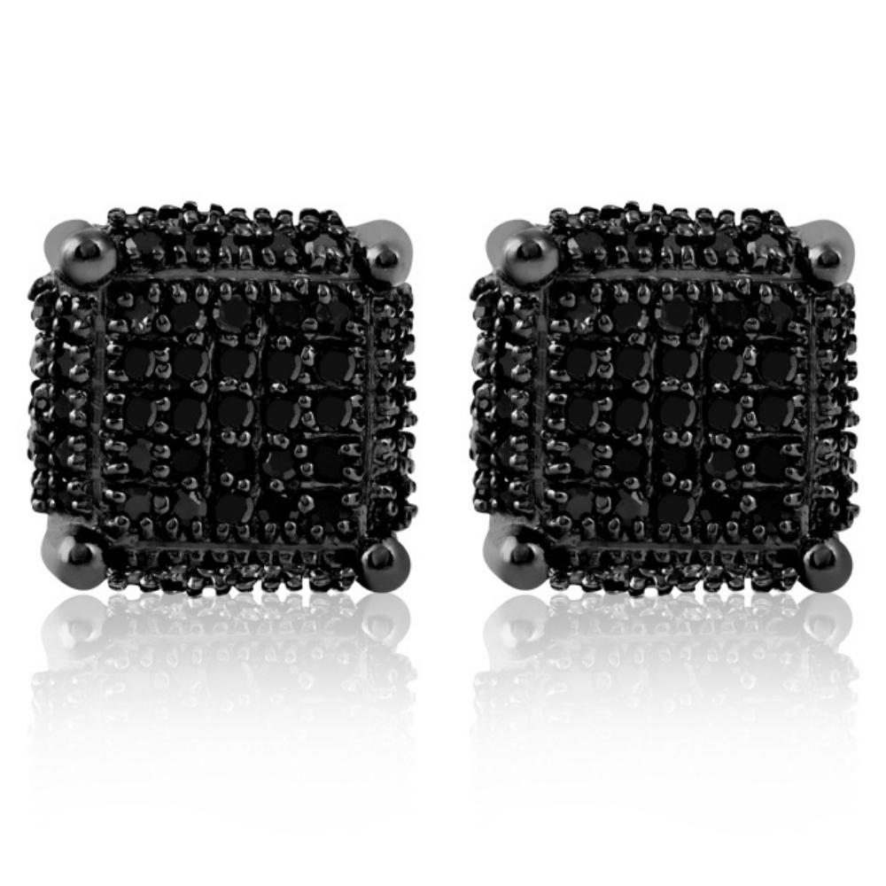 Pompeii3 black diamond earrings clearance, Pompeii3 1/2Ct Black Diamond Pave Square Earrings Screw Back Studs Black Gold 8.7mm - Walmart.com clearance