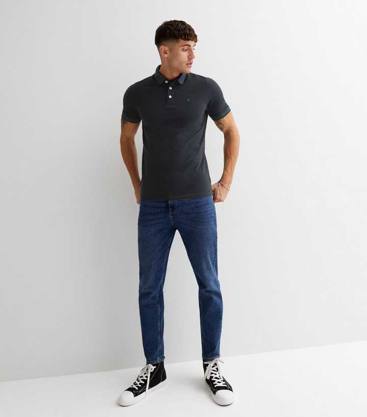 Black jeans blue polo clearance, Jersey polo shirt clearance