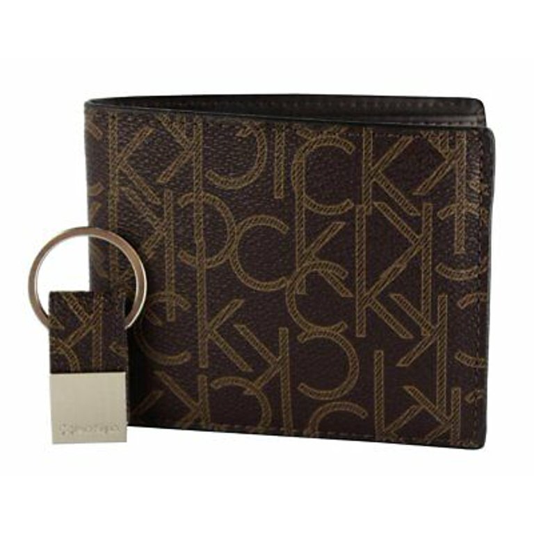 Calvin klein brown leather wallet clearance, Men's Calvin Klein CK Print Brown Leather Bifold Wallet u0026 Key Fob - Walmart.com clearance