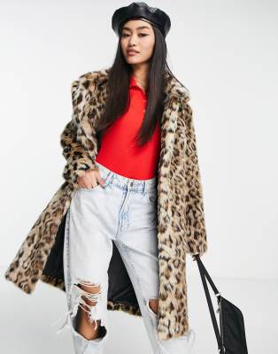 Urbancode leopard coat clearance, Leopard Longline Faux Fur Coat - Lyst clearance