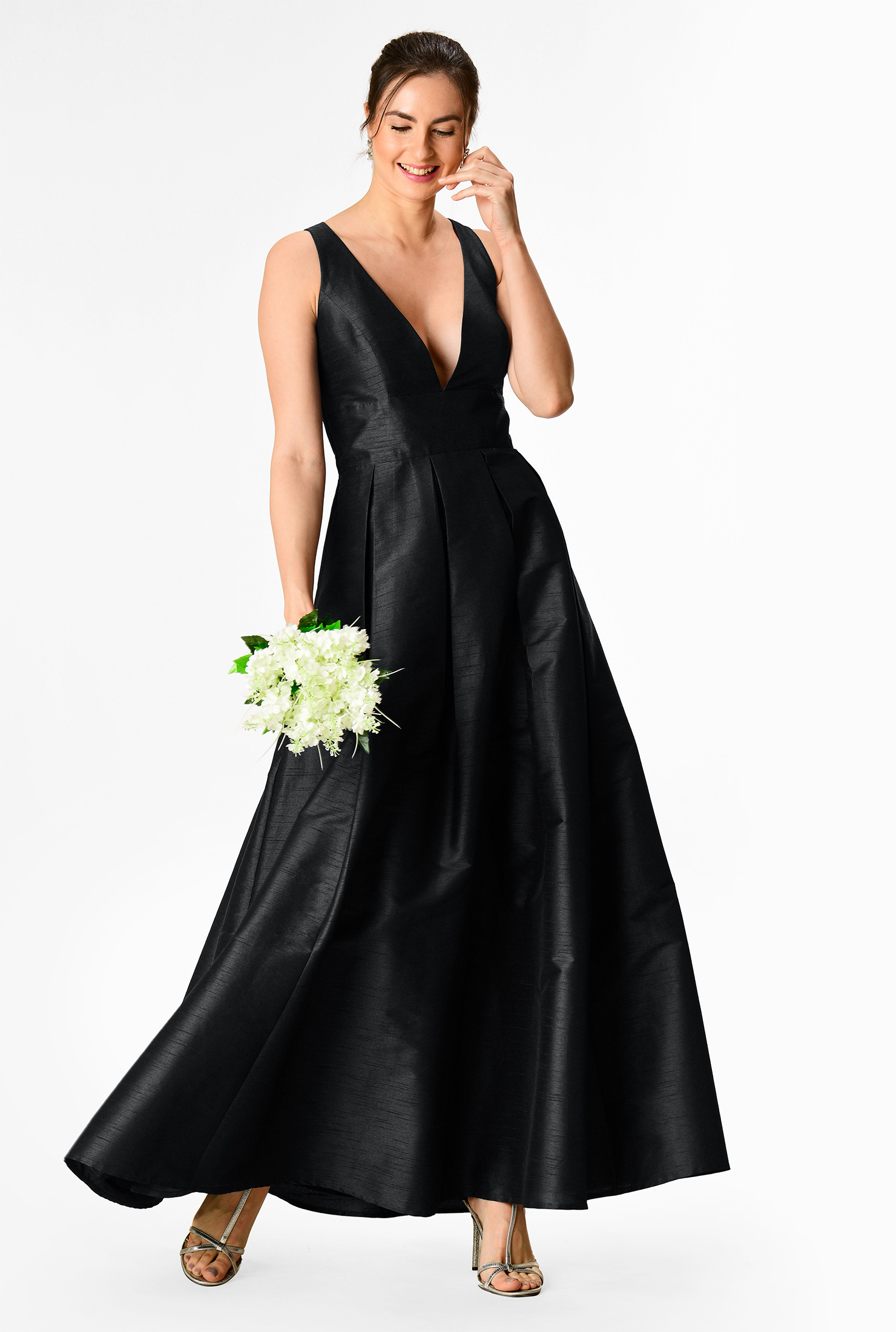 Eshakti maxi dress clearance, Shop Pleated floral print crepe maxi clearance