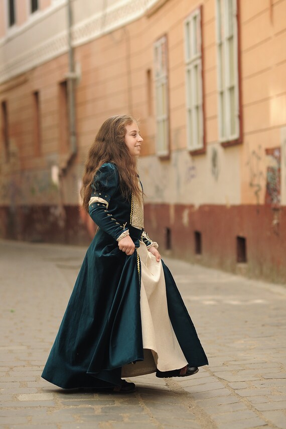 Dark turquoise blue dress clearance, Medieval Dress for Girls/dark Blue Dark clearance