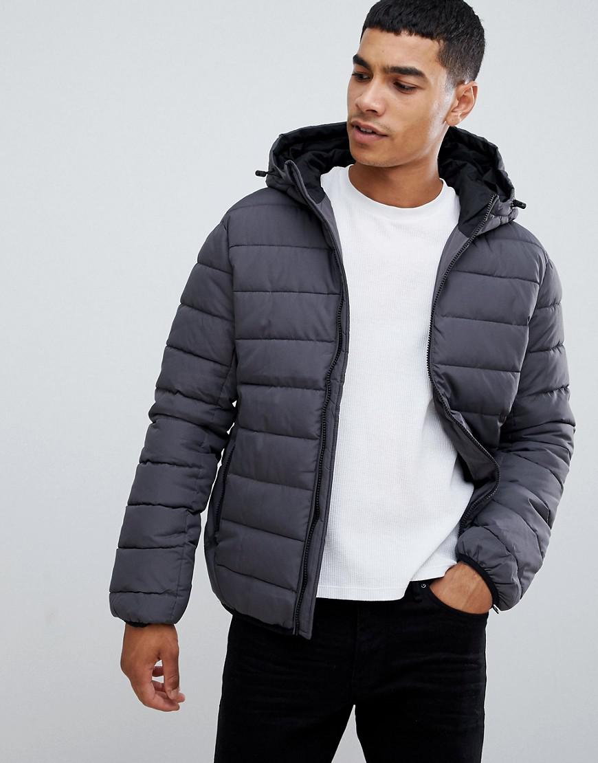- New look grey hooded puffer jacket sale online