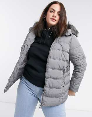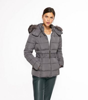 New look grey hooded puffer jacket clearance, Pale Grey Faux Fur Hood Puffer Jacket clearance