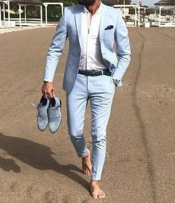 Sky blue suit for groom clearance, Men Suits Beach Wedding Suits Sky Blue clearance