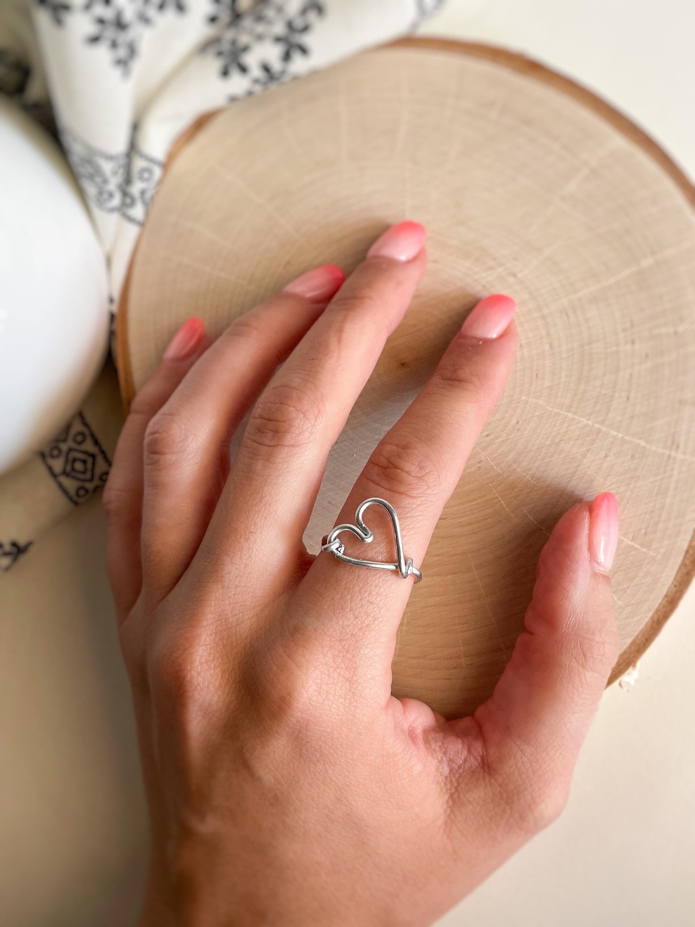 Loving heart wire ring clearance, Sterling Silver Heart Wire Ring - Self Love Gift clearance