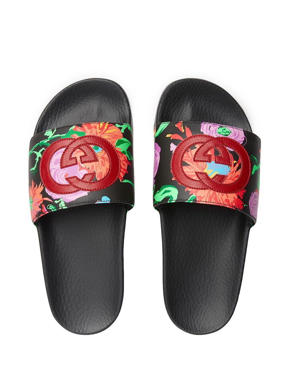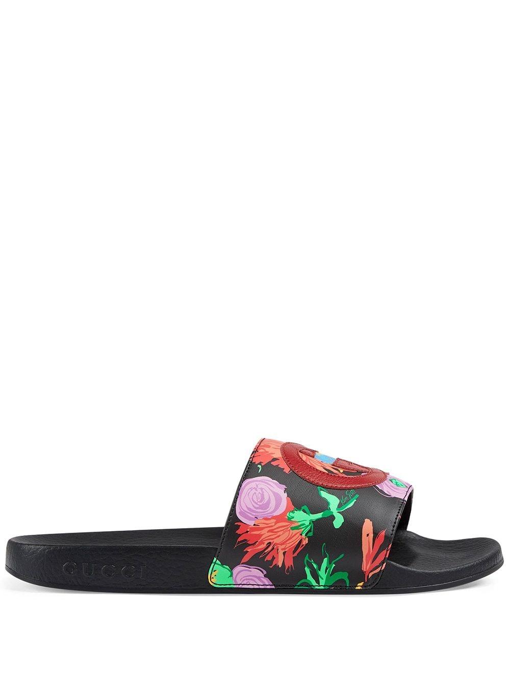 Gucci ken scott slides black clearance, Gucci x Ken Scott Women's Pursuit Floral Print Slide Sandals | Bloomingdale's clearance