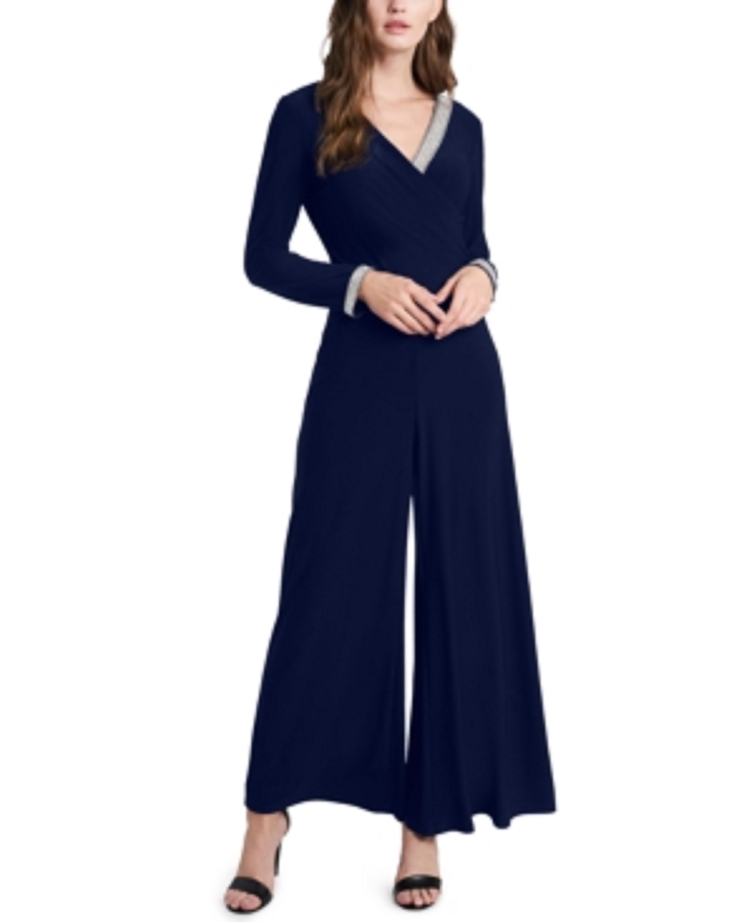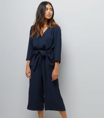 Petite jumpsuit navy clearance, Petite Navy Wrap Front Culotte Jumpsuit clearance