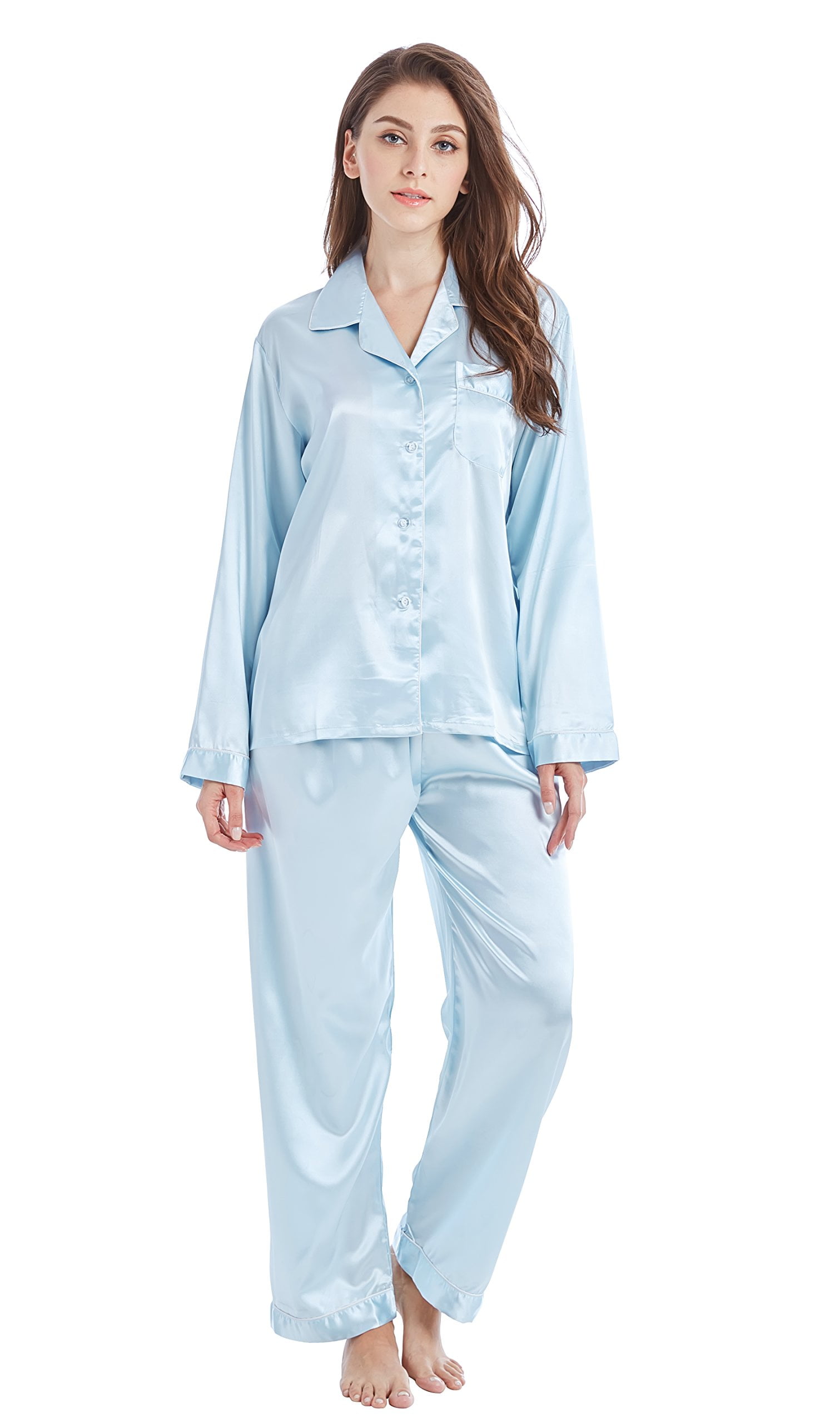 - Blue satin pajamas womens free shipping