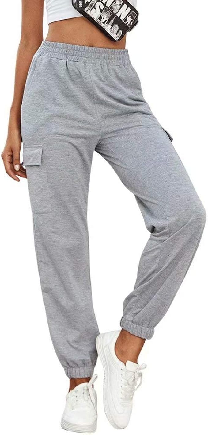 Elastic sweatpants clearance, Solid Elastic Waist Slant Pocket clearance