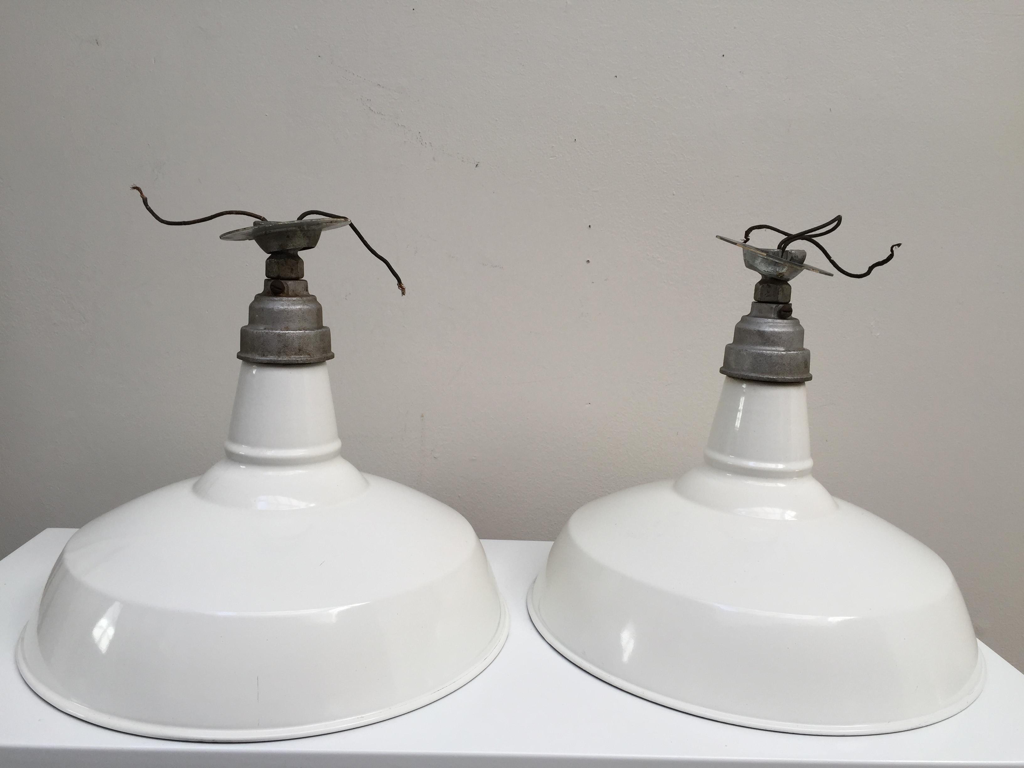 Factory lights for sale clearance, Vintage Large White Industrial Porcelain Factory Lights by Benjamin - A Pair clearance