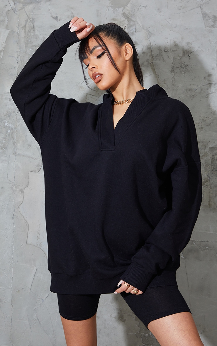 Hoodie v neck clearance, Black V Neck Rib Detail Hoodie | Tops | PrettyLittleThing clearance