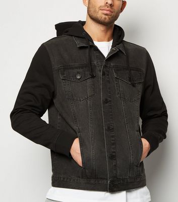 Black denim jacket with hood clearance