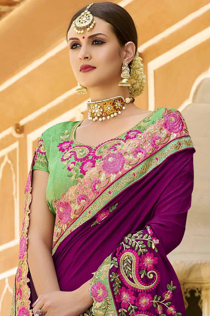 Purple wedding saree clearance