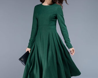 Green winter dress clearance, Midi Winter Dress | Etsy clearance
