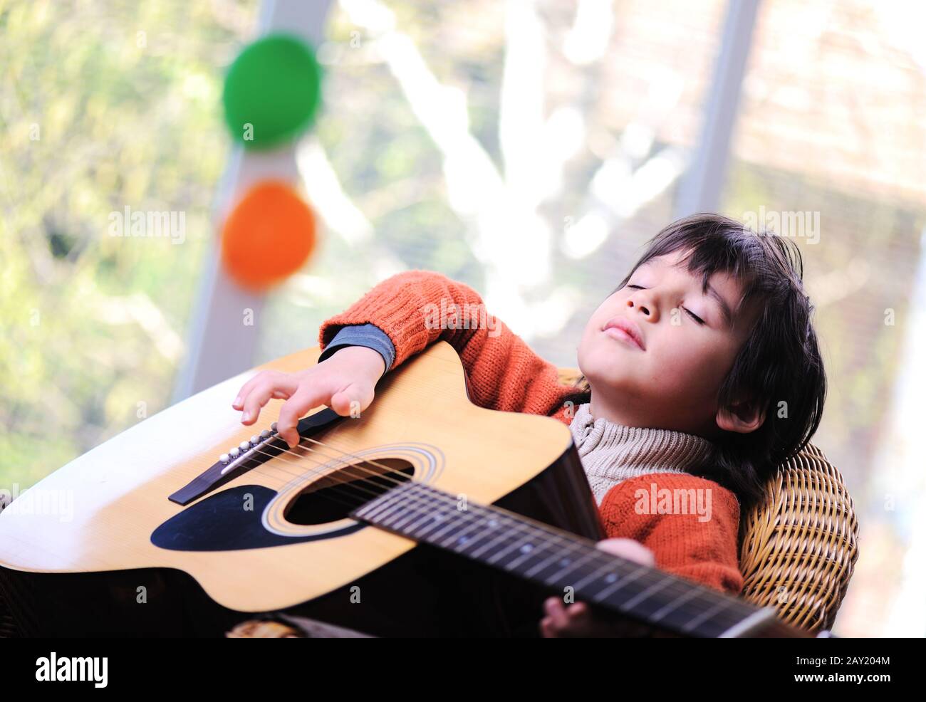 Child with guitar clearance, Kid playing guitar at home Stock Photo clearance