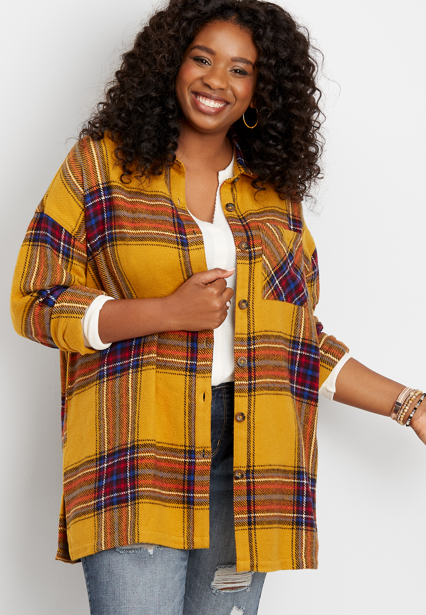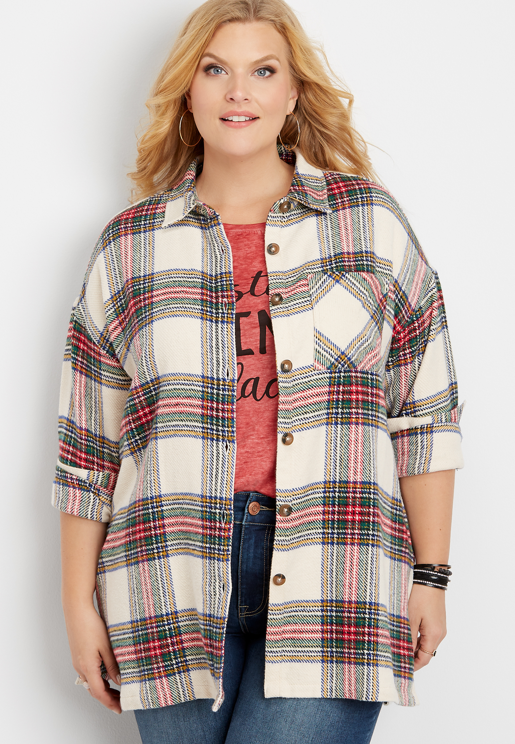 - Plus size plaid shirt jacket