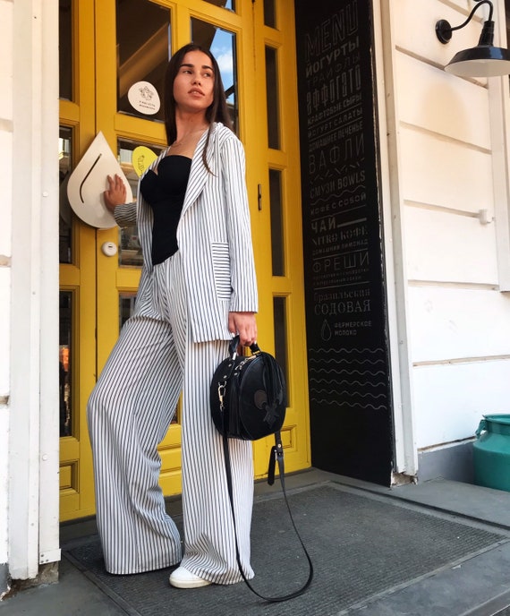 - Black and white striped pants and blazer sale online