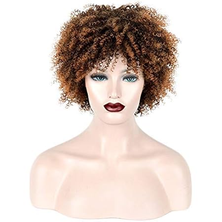 Afro bush wigs clearance, black and brown short spiral curly wigs clearance