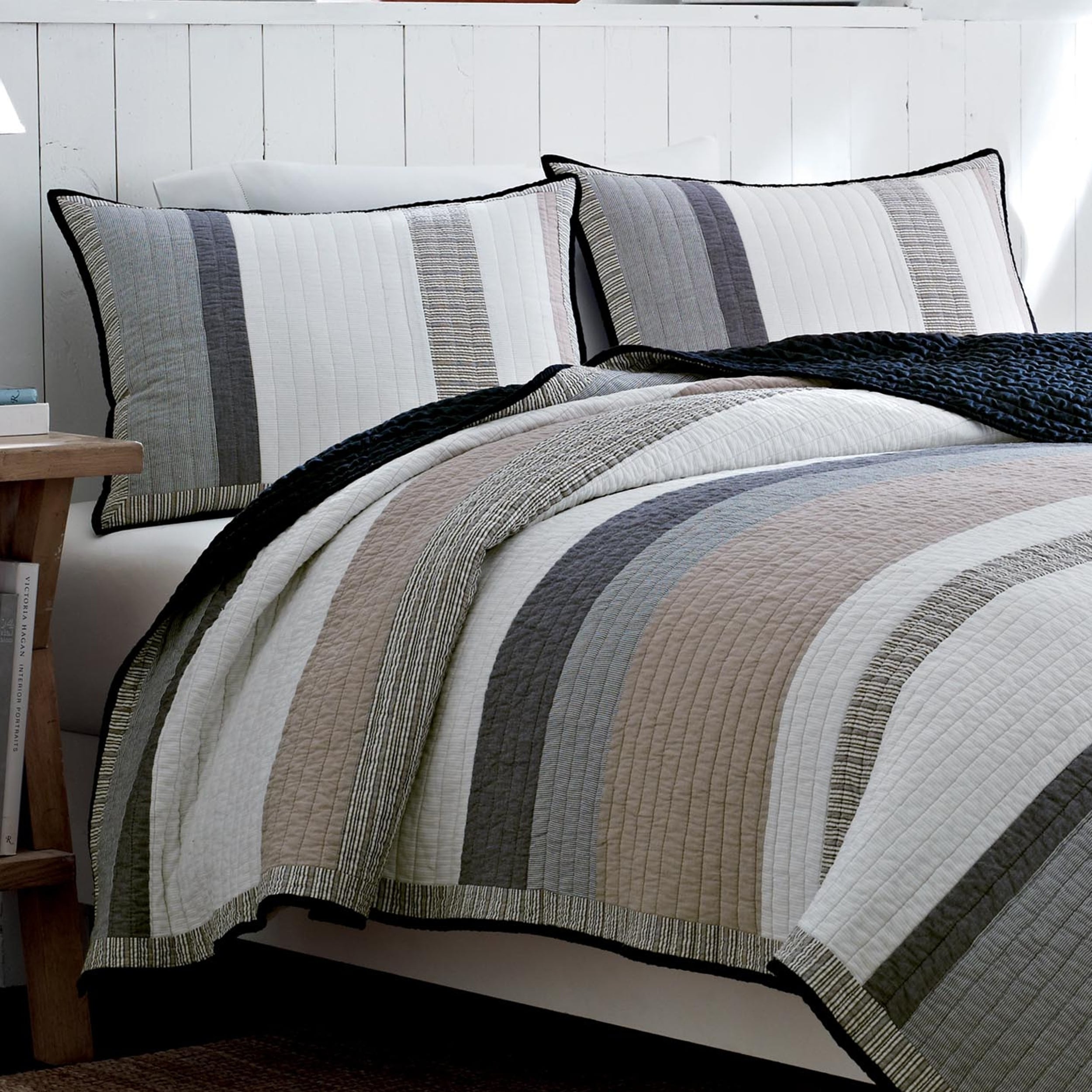 - Nautica tideway neutral stripe cotton reversible quilt clearance