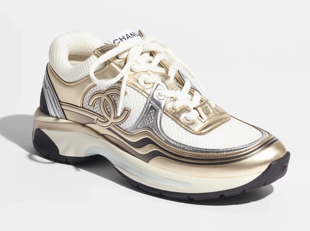 White and silver chanel sneakers clearance, BNIB Authentic CHANEL Runway 23C Sneakers Trainer Gold/White/Silver Size 36.5 | eBay clearance
