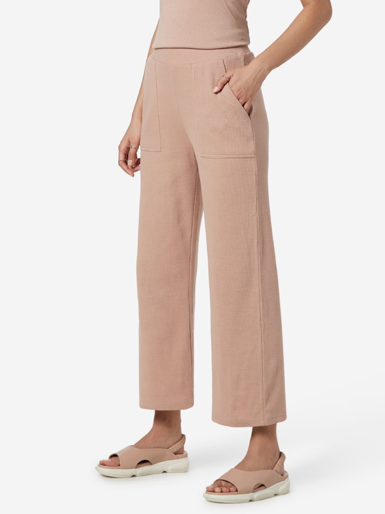 Ribbed beige pants clearance, Knit pants outfit clearance