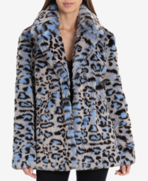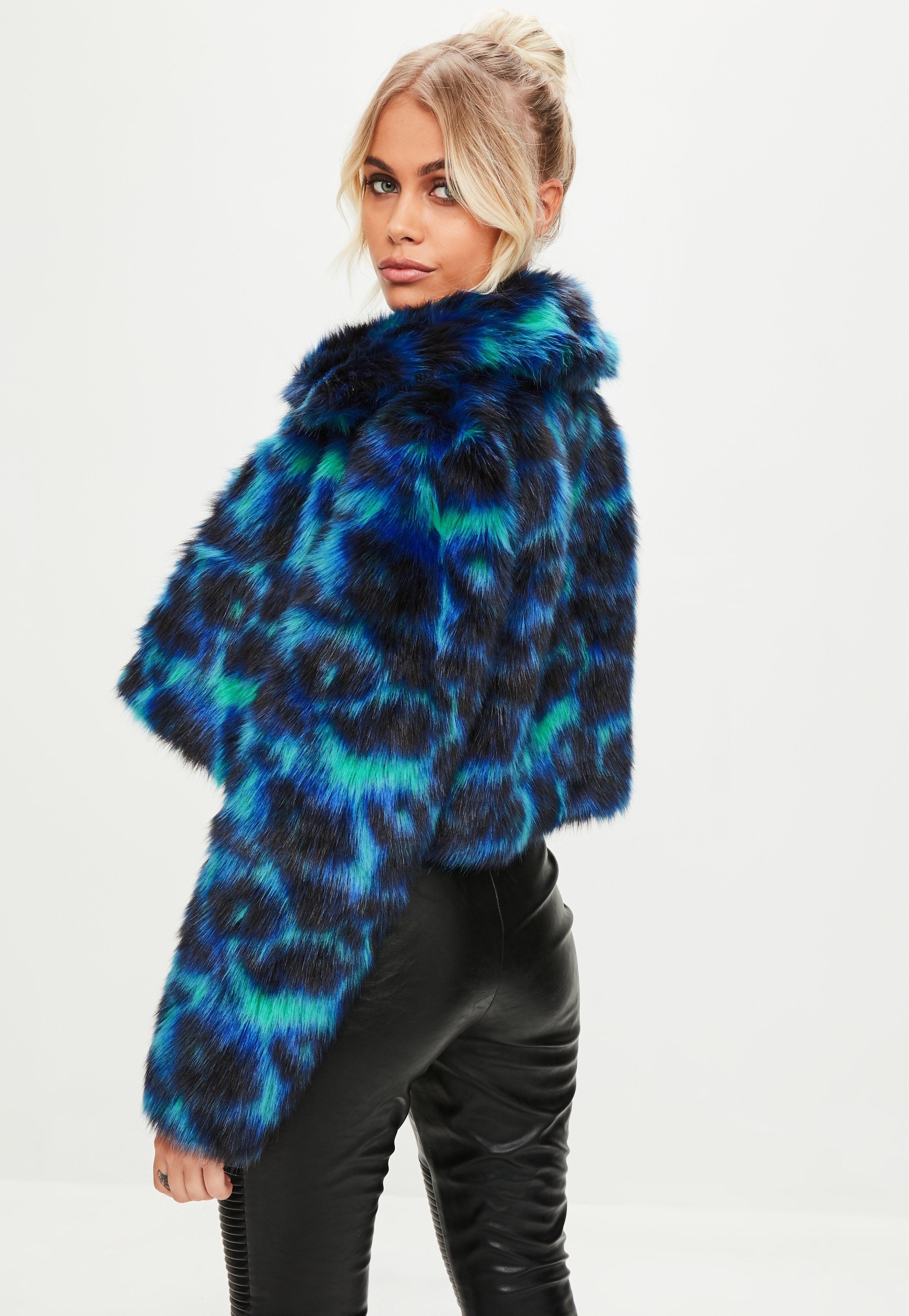 Blue leopard fur coat clearance, Missguided Blue Leopard Print Faux Fur clearance