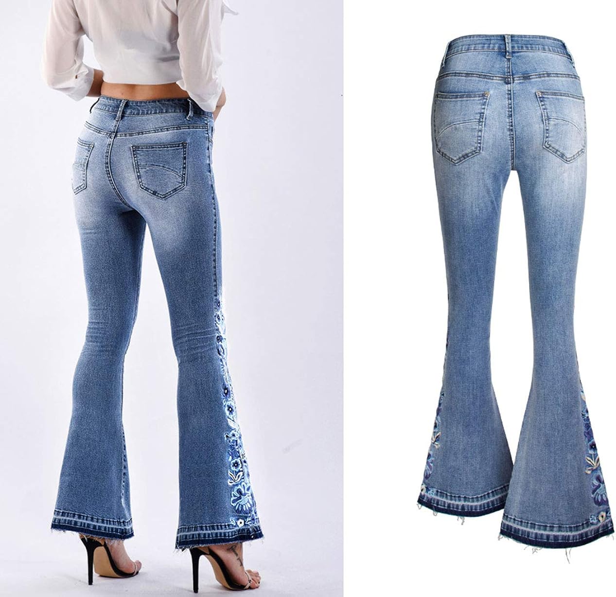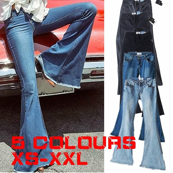 Broad bottom jeans clearance, High Waist Broad Feet Long Denim Pants clearance