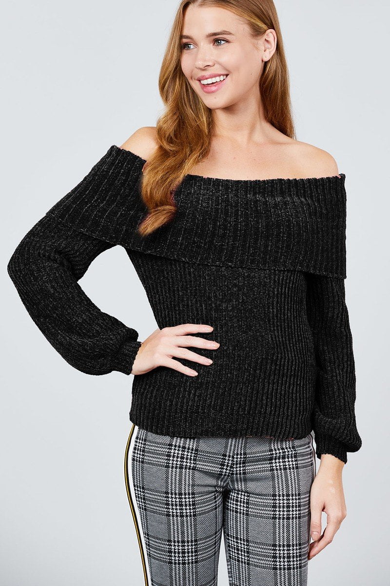- Off the shoulder chenille sweater outlet