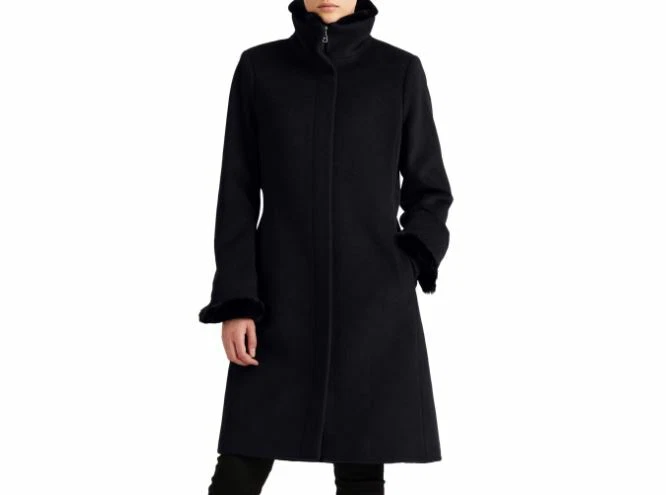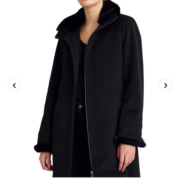 - Ralph lauren faux fur trim wool blend coat