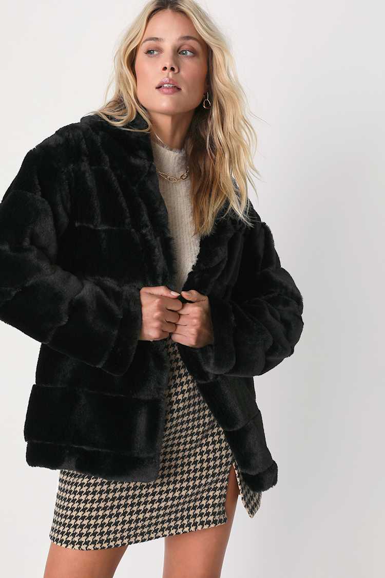 Lulus black coat clearance, Black Jacket - Faux Fur Jacket - Quilted Jacket - Cropped Jacket - Lulus clearance