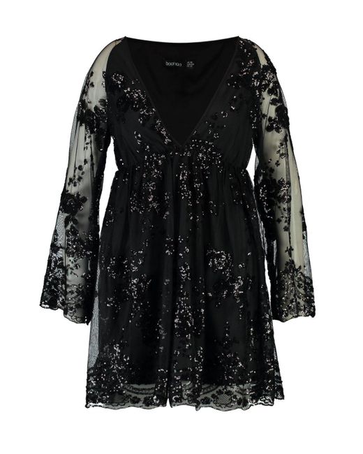 Plus floral sequin wrap skater dress clearance, black sequin wrap dress off 79 clearance